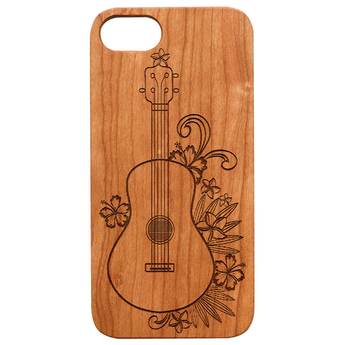 9-Â Ukelele With Flowers - Engraved Wood Phone Case
