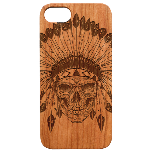 13- Indian Skull 2 - Engraved Wood Phone Case