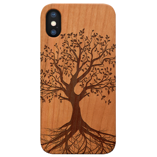 9- Tree with Big Leaf - Engraved Wood Phone Case